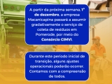 Informa o início da transição da coleta de resíduos para nova empresa.