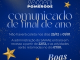 O SAMAE Pomerode informa aos munícipes que, durante o período de férias coletivas, o atendimento pelo WhatsApp seguirá funcionando normalmente pelo número (47) 3380-2550.