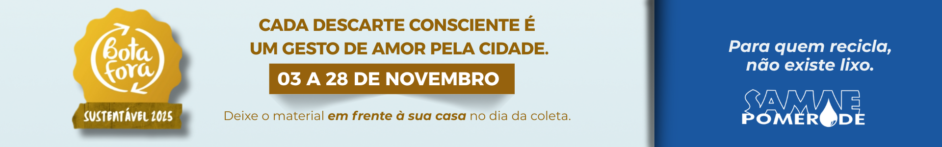 O slogan deste ano, “Cada descarte consciente é um gesto de amor pela cidade”, busca sensibilizar a população sobre a importância de adotar práticas sustentáveis no dia a dia. A mensagem reforça que o cuidado com o descarte de resíduos sólidos é essencial para manter e aprimorar os índices de reciclagem, a limpeza e a ordem urbana de Pomerode.